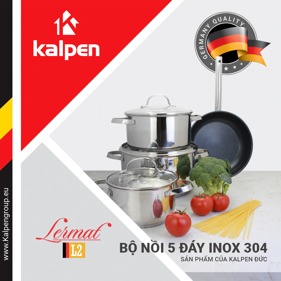 Bộ nồi inox 304 cao cấp 5 đáy Kalpen Lermat L2
